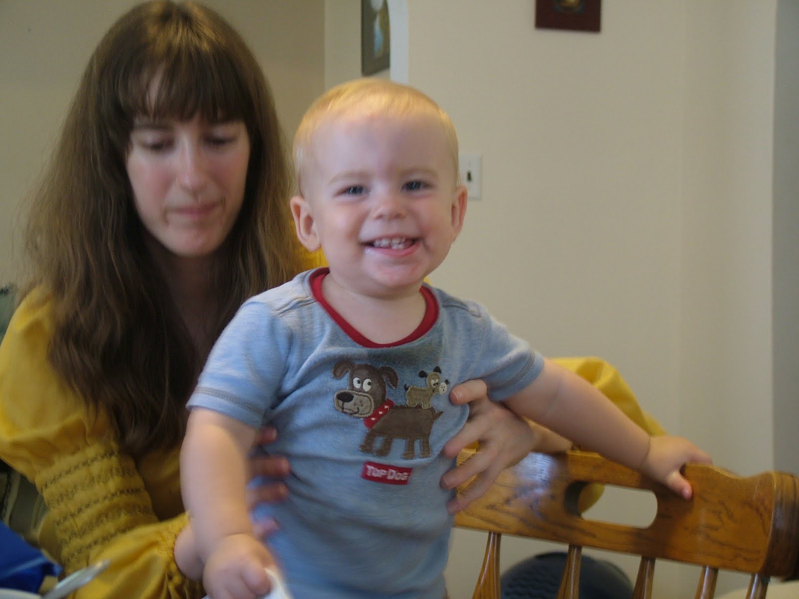 The baby, by the way, has been completely adorable lately. He's learned to turn around, walk backwards, throw a ball, and say lots of new words (bacon, up, ball, truck, milk, outside, inside). None of them really sound like the actual word, but he's trying. Sometimes I have to guess a little bit ("hot? hat? out?") but he's pretty good at letting me know when I've got the right one.